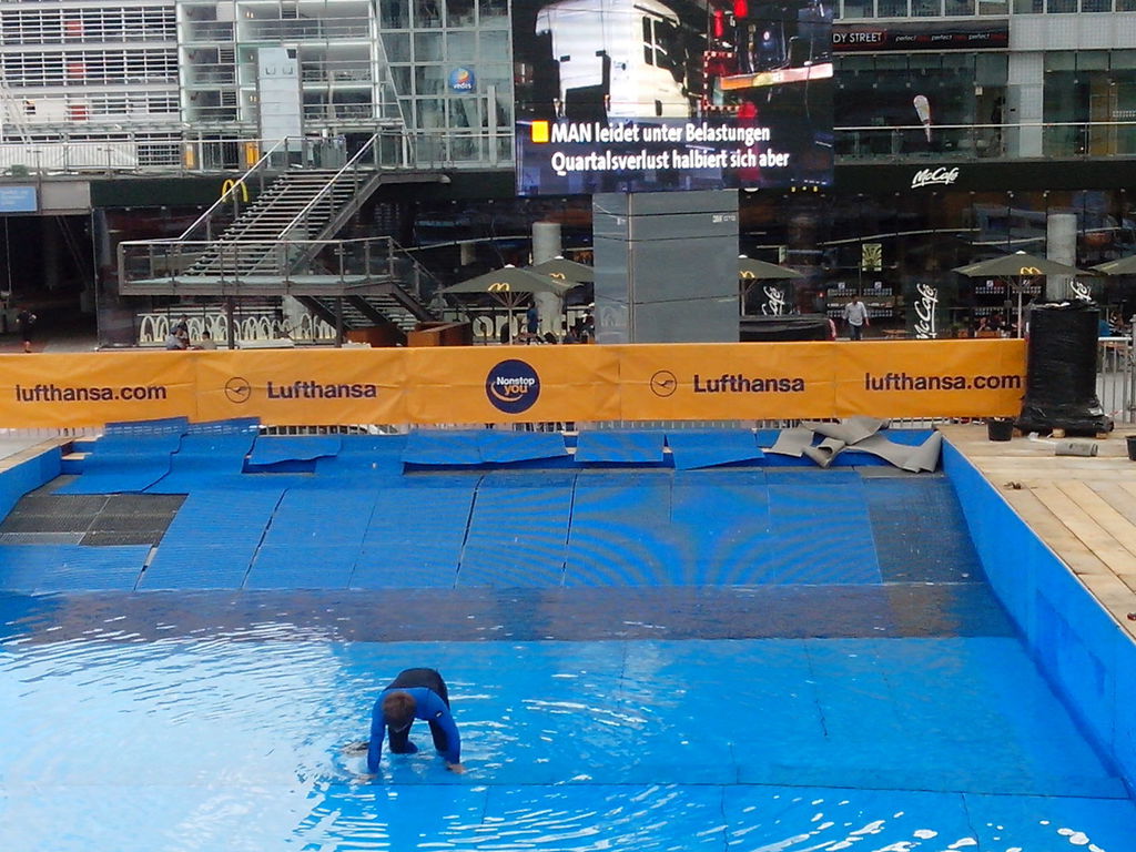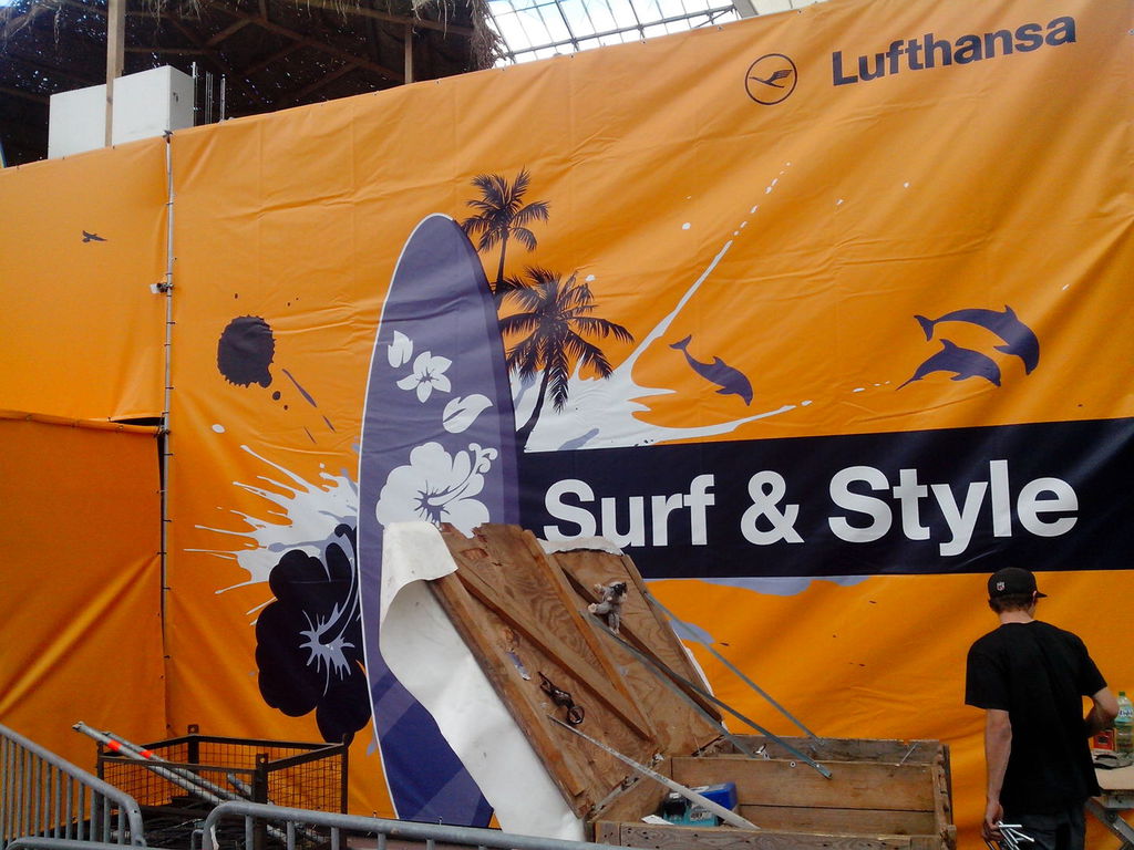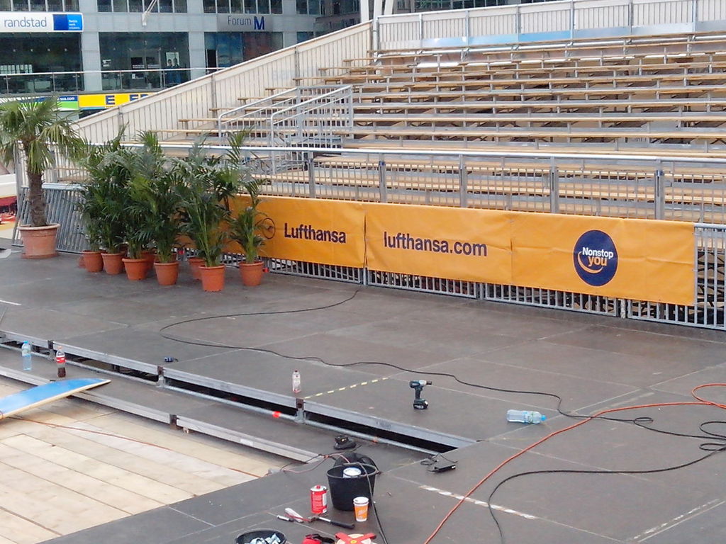 PVC-Bannern zur Verkleidung der Tribühne und der Welle.