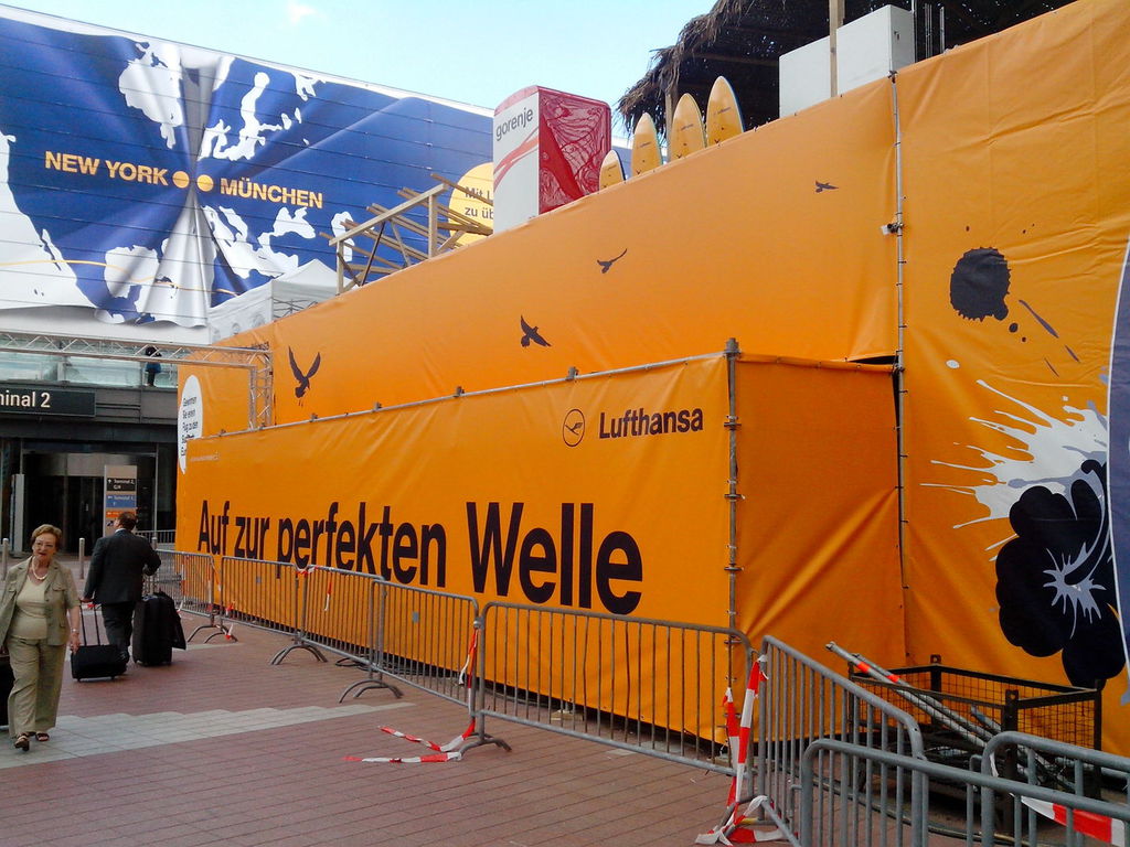 Ihr Kunde ist zu weit weg - zu viele Jobs - wir übernehmen die Montage Ihre Folien, Banner oder auch Messeaufbauten. Unsere Teams verkleben großflächige Folien